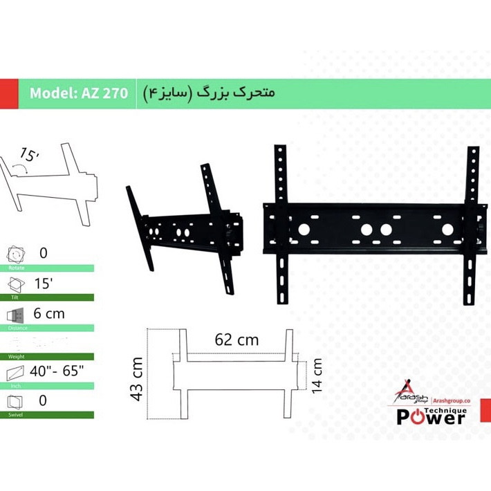 توضیحات حرکت: حرکت تلویزیون با زاویه به سمت بالا و پایین