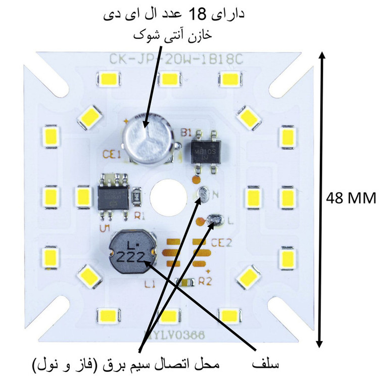 چیپ پروژکتور ال ای دی 20 وات مدل خازندار بسته 2 عددی