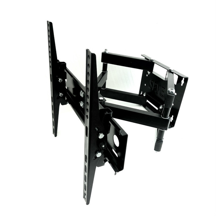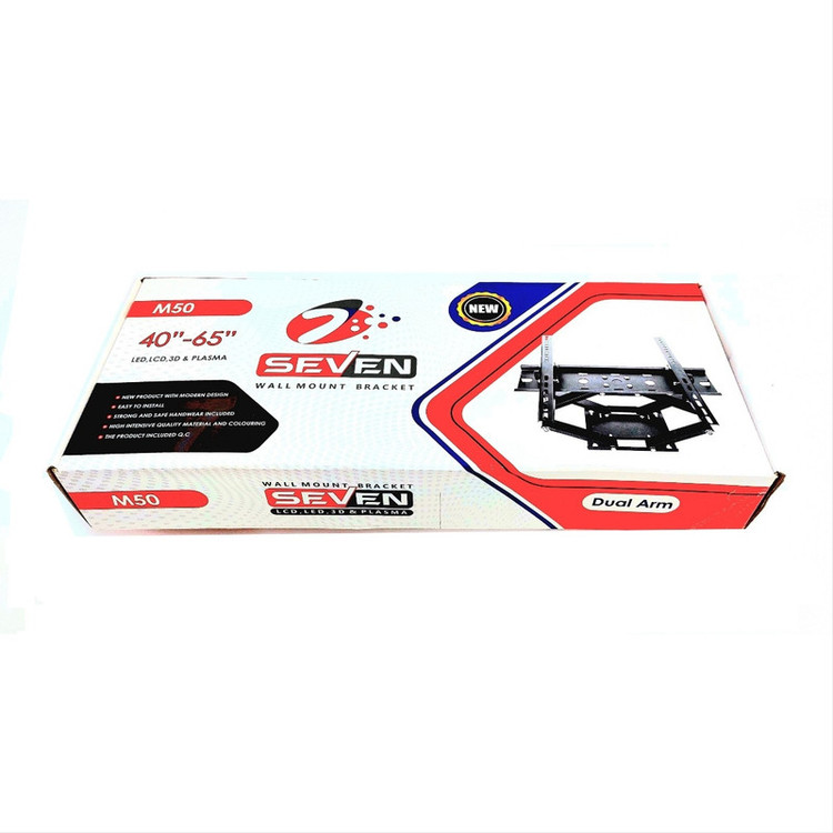 پایه دیواری تلویزیون دوبازوسون مدلM50 تولید داخلی با استانداردVESA که با ضخامت ورق 1.5 میلی متر با استفاده از برش لیزری با کیفیت میباشد که به شما اجازه می دهد تلویزیون خود را در تمامی جهات که دوست دارید حرکت داده و در زاویه مناسب و دلخواه قرار دهید ( قابلیت تغییر زاویه و تغییر فاصله از دیوار را دارد 15 درجه به بالا و پایین 45 درجه به چپ و راست 40 سانتیمتر به جلو و عقب ) و کمترین فاصله پشت تلویزیون از دیوار 15 سانتی متر می باشد. پایه نگهدارنده تلویزیون از جنس فلز با رنگ الکترواستاتیک کوره ای پوشانده شده که مقاومت آن را چند برابر می کند.این پایه دیواری تلویزیون با وزن 5450 گرم قادر به نگهداری وزنی بالغ بر 40 کیلوگرم مناسب برای تلویزیون های با سایز 43 تا 65 اینچ طراحی و ساخته شده است. براکت مذکور بهترین گزینه برای تلویزیون سامسونگ، ال جی، سونی، شارپ، ایسوس، اسنوا، فیلیپس، پاناسونیک و ایکس ویژن ودرکل تلویزونهای تولید داخل وتلویزیونهای وارداتی می باشد. روش نصب براکت تلویزیون بسیار آسان و ساده می باشد. در اکثر مدل های پایه دیواری تلویزیون راهنما و تجهیزات نصب وجود دارد. کاربران می توانند راهنمای نصب پایه تلویزیون را مطالعه کنند. و با استفاده از ابزارهای ساده مانند دریل و مته و پیچ گوشتی پایه را روی دیوار نصب کنند. سپس تلویزیون را روی پای قرار دهند. بهتر است پس از نصب پایه و زمان قرار دادن تلویزیون روی پایه، با توجه به سنگین بودن تلویزیون از شخص دیگری نیز کمک گرفت. قبل از نصب پایه تلویزیون ابتدا باید از قدرت و مقاومت دیوار اطمینان حاصل کرد. دیوار محل نصب بایستی قدرت تحمل پایه به همراه تلویزیون را داشته باشد. اگر چنین نبود باید محل مناسب دیگری برای نصب پیدا کرد و یا دیوار فعلی را با کمک افراد متخصص تقویت کرد.این محصول ، تمامی وسایل و یراق آلات مورد نیاز نصب درون بسته بندی قرار دارد و حداکثر وزن مجاز 40 کیلوگرم می باشد. و کمترین فاصله پشت تلویزیون از دیوار 15 سانتی متر می باشد. بیشترین فاصله تلویزیون از دیوار زمانی که بازوهای جک به طور کامل باز است 45 سانتی متر می باشد.