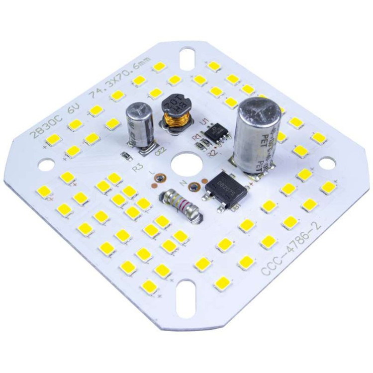 این چیپ مجهز به خازن آنتی شوک میباشد که هم از لرزش و چشمک زدن نور جلوگیری میکند و هم باعث افزایش نور چیپ میشود . این چیپ با برق مستقیم شهری 220 ولت روشن میشود و در تعمیر یا ساخت لامپ ها و پرژکتورها و پنلهای ال ای دی استفاده میشود. جهت استفاده از این چیپها پیشنهاد میشود با استفاده از خمیر سیلیکون به خنک کننده آلومینیومی (heat sink مناسب به منظور جلوگیری از افزایش دمای چیپ و کاهش عمر محصول چسبانیده شود. روی چیپ دو حرف L و N وجود دارد که فاز و نول به آنها متصل میشود . کاربرد این چیپ برای تعمیر لامپها پرژکتورها و پنل های ال ای دی سوخته می باشد که کارکرد آن با برق مستقیم شهری 220 ولت است.
