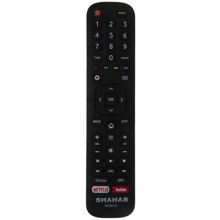 ریموت کنترل شهاب مدل « EN2B27X »، یک ریموتکنترل مشکی رنگ است که برای تلویزیون طراحی شده است. ابعاد جمع و جور این مدل، باعث میشود تا کاربری سادهای داشته باشد. این مدل در ابعاد 2 × 5 × 20 سانتیمتر و وزن 87.6 گرم به بازار عرضه شده. در صورتی که ریموت تلویزیونتان آسیب دیده، چرا که به مرور زمان ممکن است ریموتکنترل اصلی دستگاهتان عملکرد ضعیفتری را ارائه کند و یا خراب شود. این ریموت کنترل به شما پیشنهاد میشود؛ لازم به ذکر است که این کنترل با اکثر تلویزیونها سازگار است. منبع تغذیهی این کنترل دو عدد باتری نیمقلمی (AAA) است. بدنهی این محصول پلاستیکی است. این ریموت، از نوع عادی است. دکمههای تعبیه شده بر روی این مدل، تمام نیاز کاربران را پاسخگو است. همانطور که انتظار میرود، این مدل مجهز به دکمههای میانبر رنگی است. به وسیلهی این ریموت، شما میتوانید تمامی تنظیمات مورد نظر خود را بر روی تلویزیون انجام دهید. کاربرد این ریموت بسیار ساده است. این ریموت دارای دکمه انحصاری برای Youtube و Netflix است.