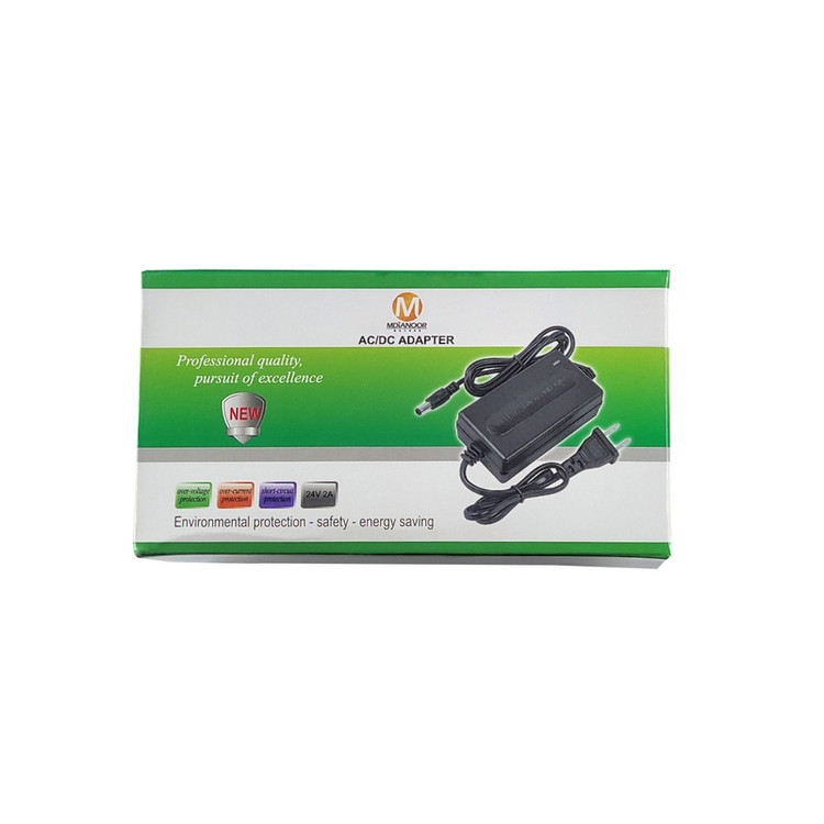 آداپتور یا همان منبع تغذیه از نوع سوئچینگ با ولتاژ ورودی 100-240 ولت و ولتاژ خروجی 24 ولت و جریان خروجی 2 آمپر یکی از بهترین انتخاب ها در میان منابع تغذیه با مشخصات فوق است. طول سیم خروجی این آداپتور 43 سانت و فیش خروجی از نوع آداپتوری استاندارد 5/5 میلی متری است. این آداپتور دارای دو شاخه ورودی برق متصل به آن میباشد و نیاز به تهیه دوشاخه جدا ندارد .